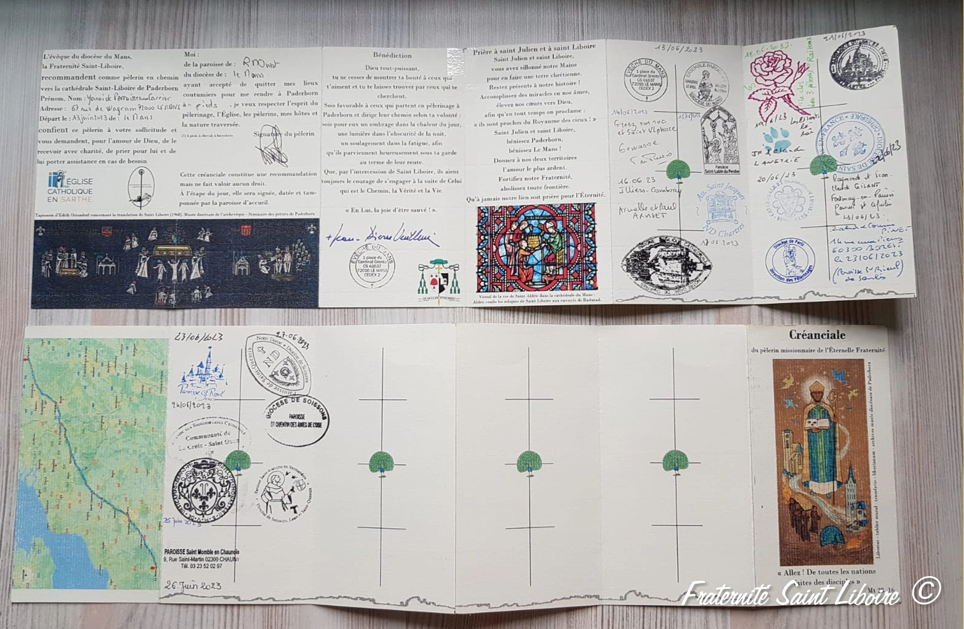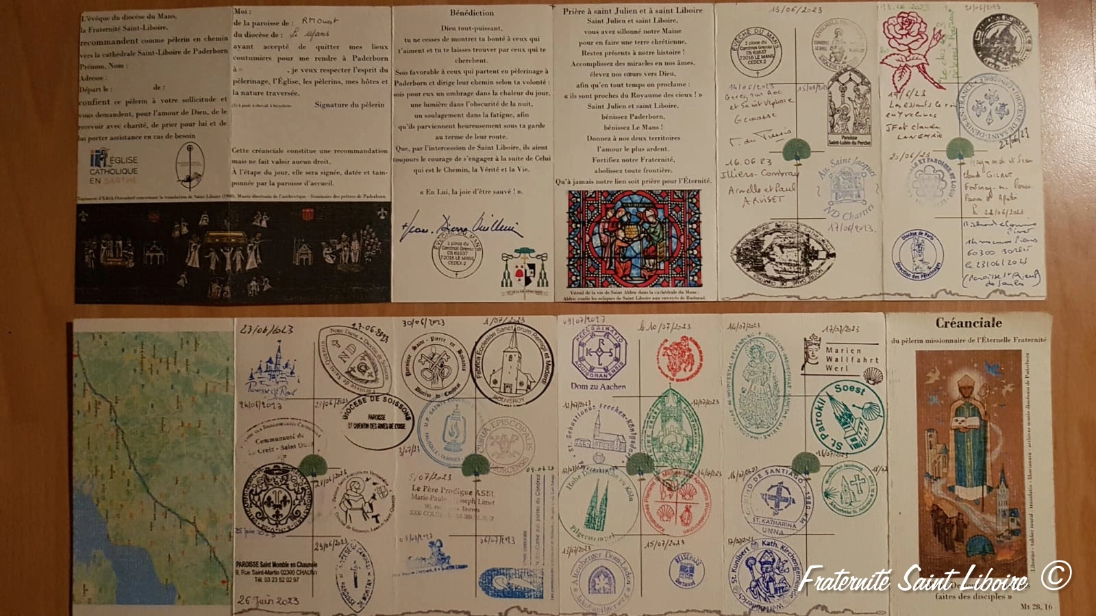 La créanciale (ou carnet du pèlerin) est remplie au fur et à mesure des accueils dans les paroisses visitées.