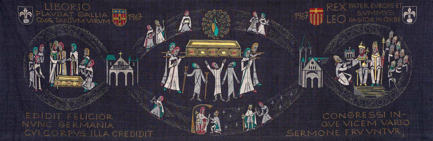 Lors de la translation des reliques de Saint-Liboire, on raconte qu’un paon précédait le cortège et qu’il mourut de fatigue en arrivant à Paderborn. Depuis ce jour, le paon est le symbole du « pacte d’éternelle fraternité » conclu par Aldric et Badurad et dont la promesse est toujours très vivante aujourd’hui. Markus, le paon de notre Maison diocésaine serait, nous assure-t-on, le digne descendant de ce premier paon carolingien …