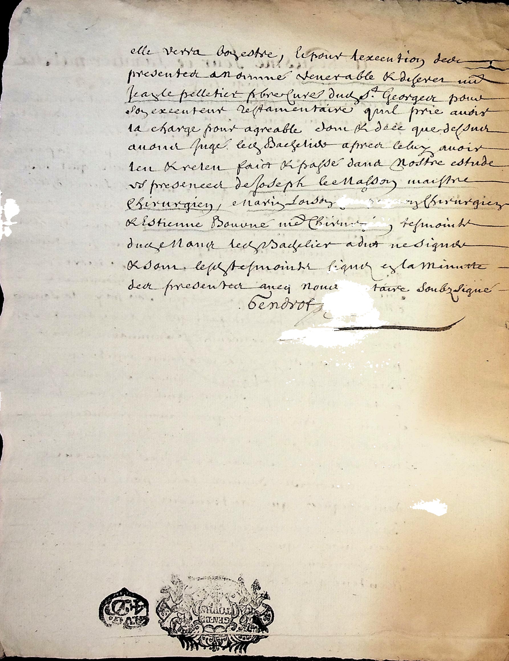 P.2 – Testament de René Bachelier, paroissien de Saint-Georges-du-Plain, 16 janvier 1693 © 1PP296 Fonds Paroisse Saint-Georges-du-Plain – ADM