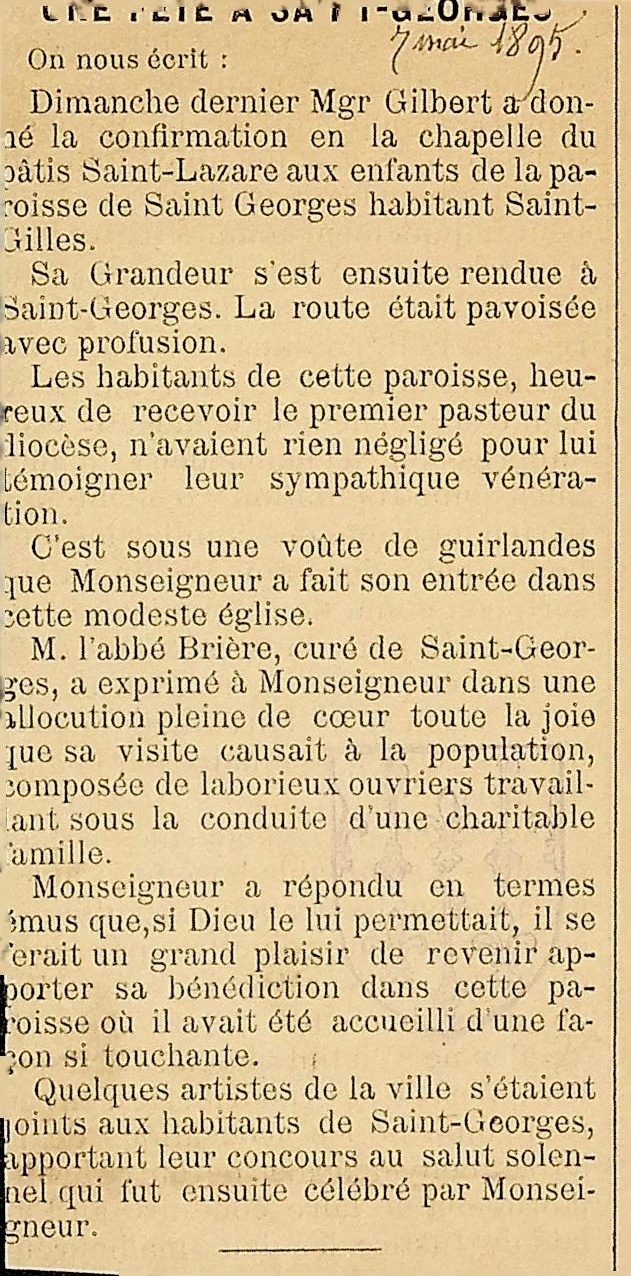 Compte-rendu de la visite de Mgr Gilbert lors des confirmations de la paroisse, évêque du Mans de 1894 à 1898 © 4P09 Fonds Paroisse Saint-Georges-du-Plain – ADM