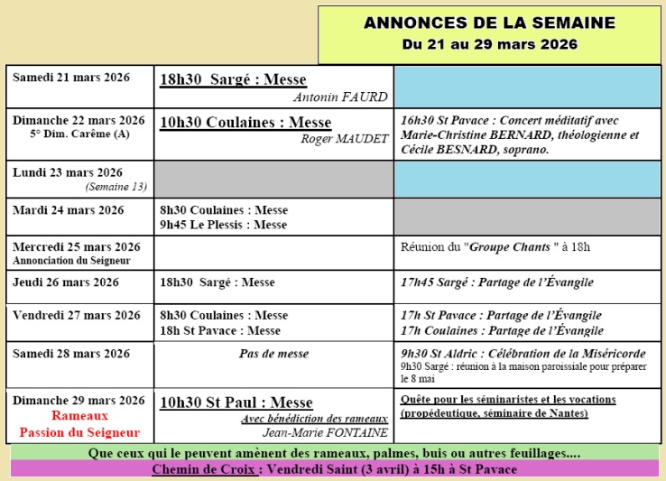 Messe du dimanche à 10h30  selon liste :