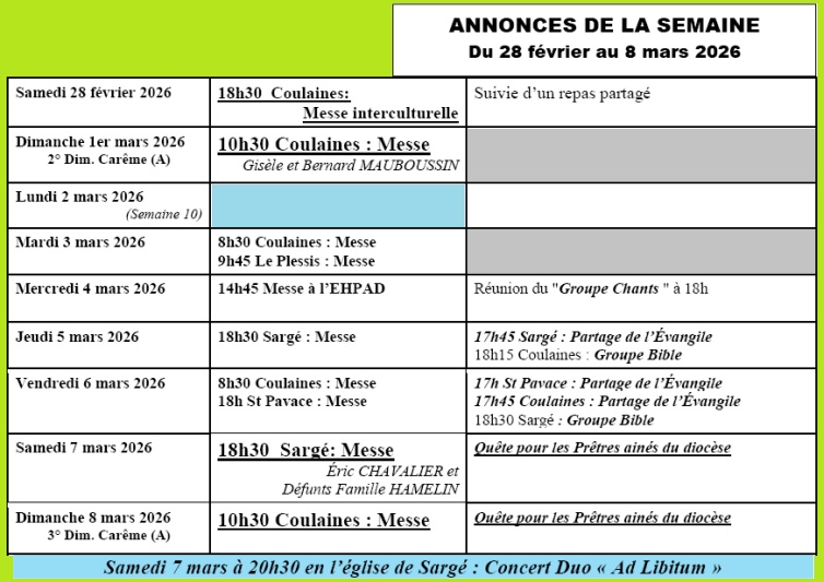 Messe du dimanche à 10h30  selon liste :