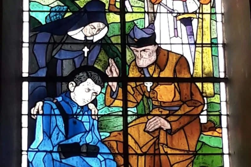 Vitrail chapelle de l’hôpital du Mans, l’onction des malades
