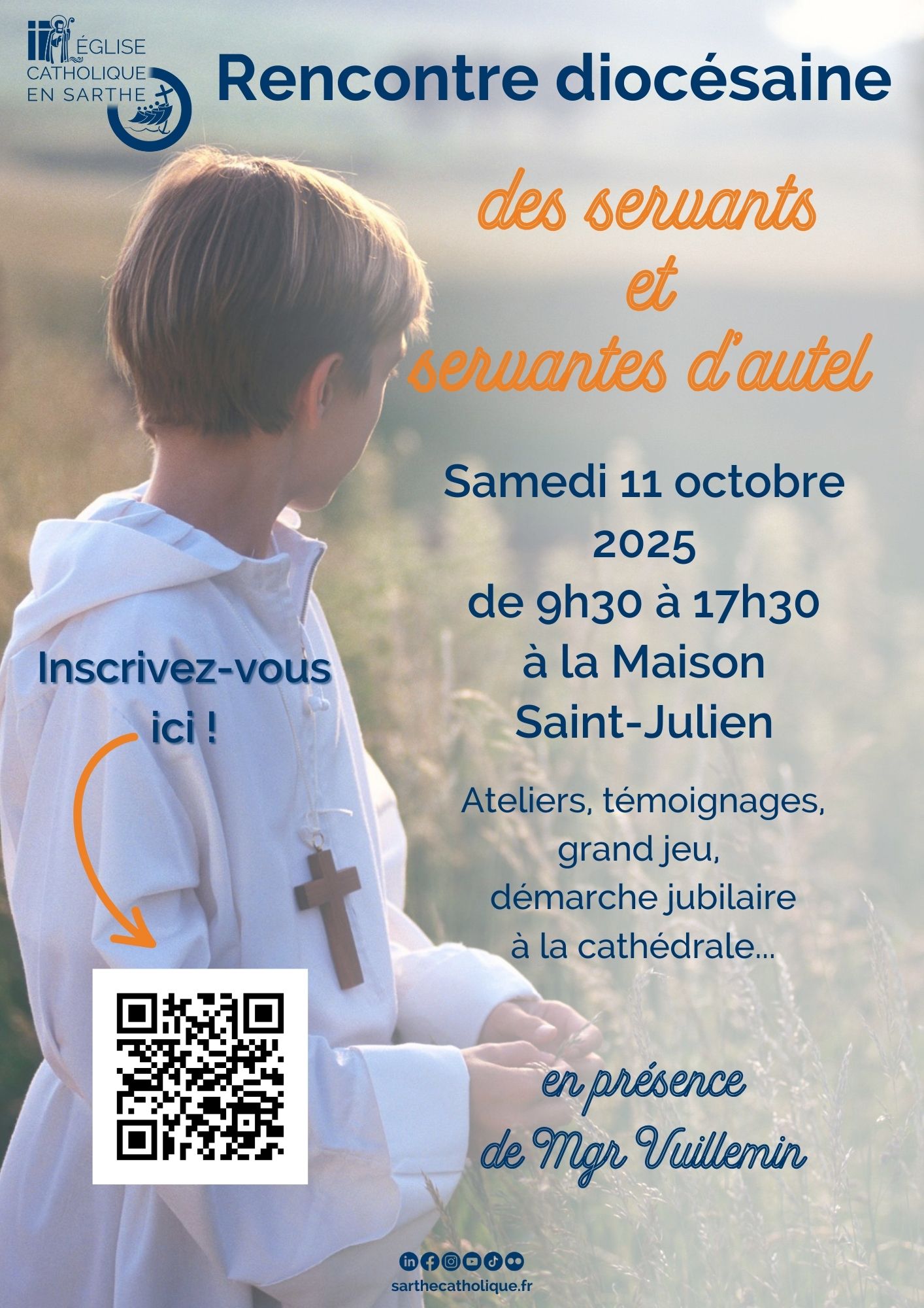 Les servants et servantes d’autel du diocèse sont invités à vivre une rencontre diocésaine samedi 11 octobre 2025, de 9h30 à 17h30 à la Maison Saint-Julien.